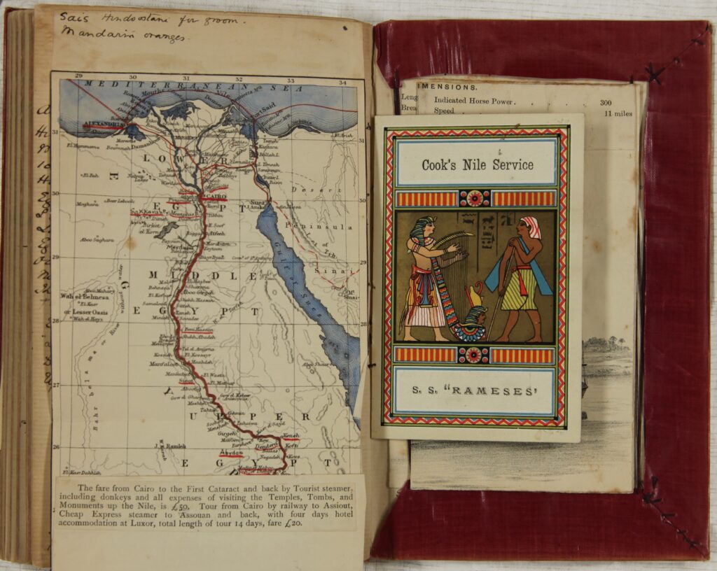 Roedd Nadolig 1888 yn achlysur arbennig iawn i Rachel M Allen (1861-1949). Fe gyfnewidiodd dywydd gaeafol Cymru am amgylchedd poeth, tywodlyd ac egsotig yr Aifft. Yn Archifau ac Astudiaethau Lleol Sir Benfro cewch weld ei dyddlyfr teithio o’i gwyliau rhwng Dydd Iau 15 Tachwedd 1888 a Dydd Mercher 2 Ionawr 1889.  Treuliwyd pythefnos yn hwylio i lawr arfordir Portiwgal a thrwy Fôr y Canoldir, gan aros yn Gibraltar a Malta, cyn cyrraedd yr Aifft. Aethant wedyn ar fordaith ar afon ar y SS Rameses gan archwilio nifer o safleoedd hynafol Eifftaidd. Mae’r dyddlyfr yn gorlifo â nodiadau ar hen bethau Eifftaidd, ei hymwneud â’r bobl leol, ac – o’r diddordeb mwyaf – ei darluniau. Yn y blog hwn, edrychwn ar ei hanturiaethau dros gyfnod y Nadolig yn yr Aifft.