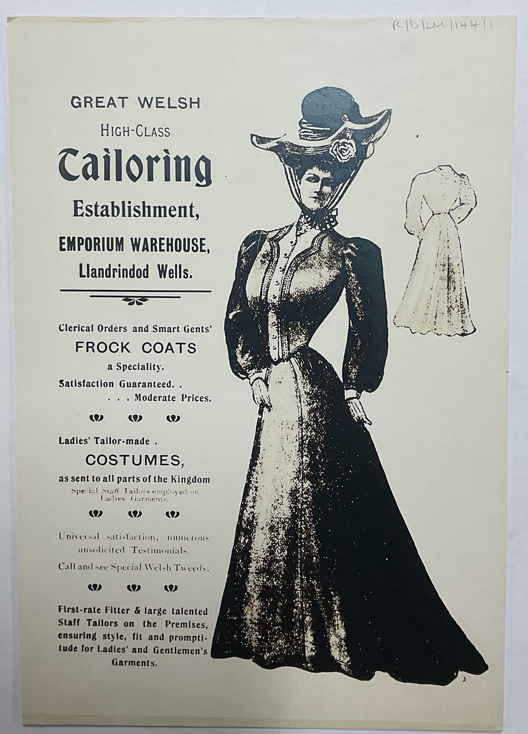 Our journey begins in Victorian-era Llandrindod Wells at the Central Wales Emporium. The poster for this expansive shop promises “style, fit, and promptitude” in both women’s and men’s clothing — a reminder of how much importance was placed on appearance at this time.