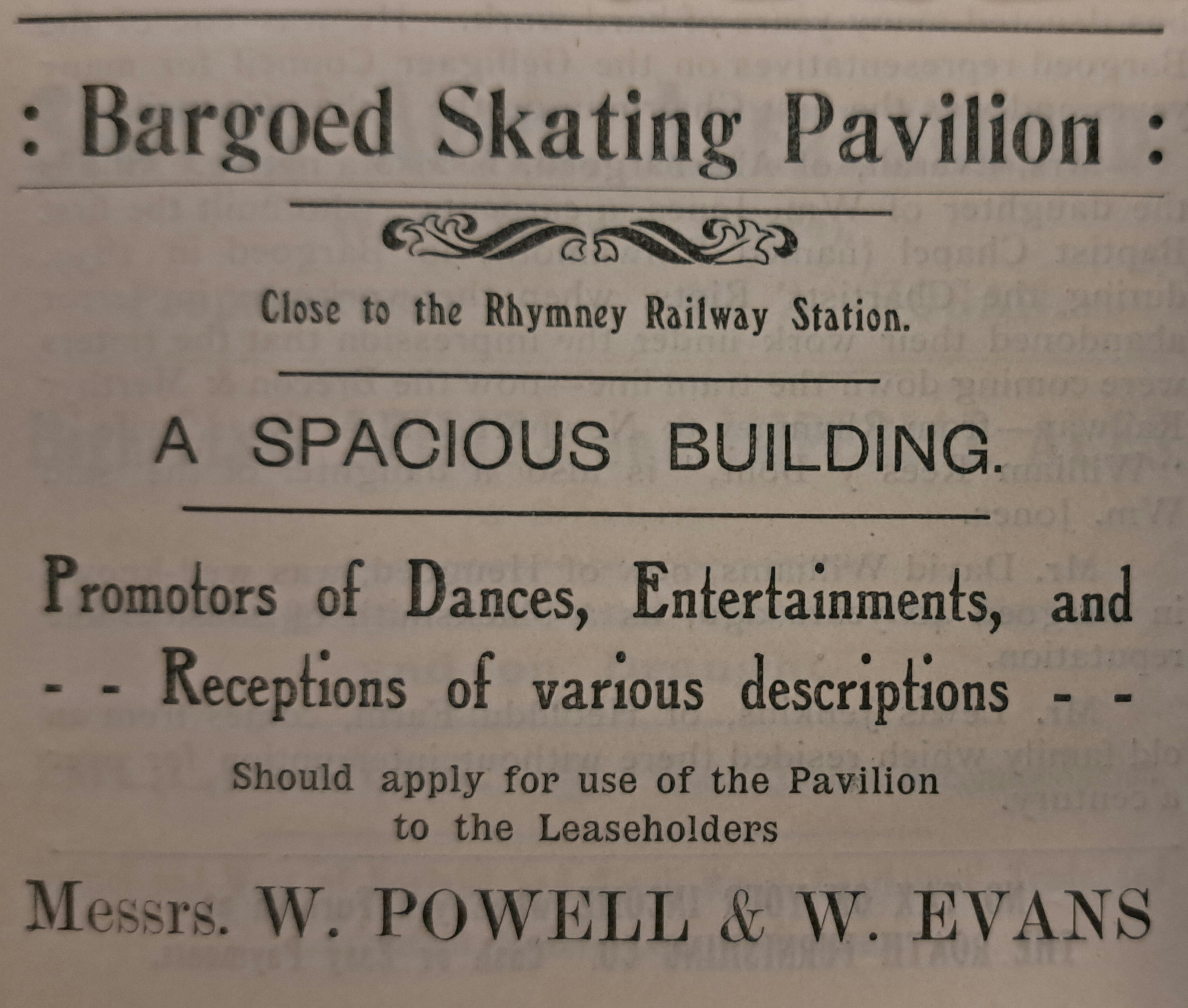 Bargoed Skating Pavilion advert (1912), item from Glamorgan Archives